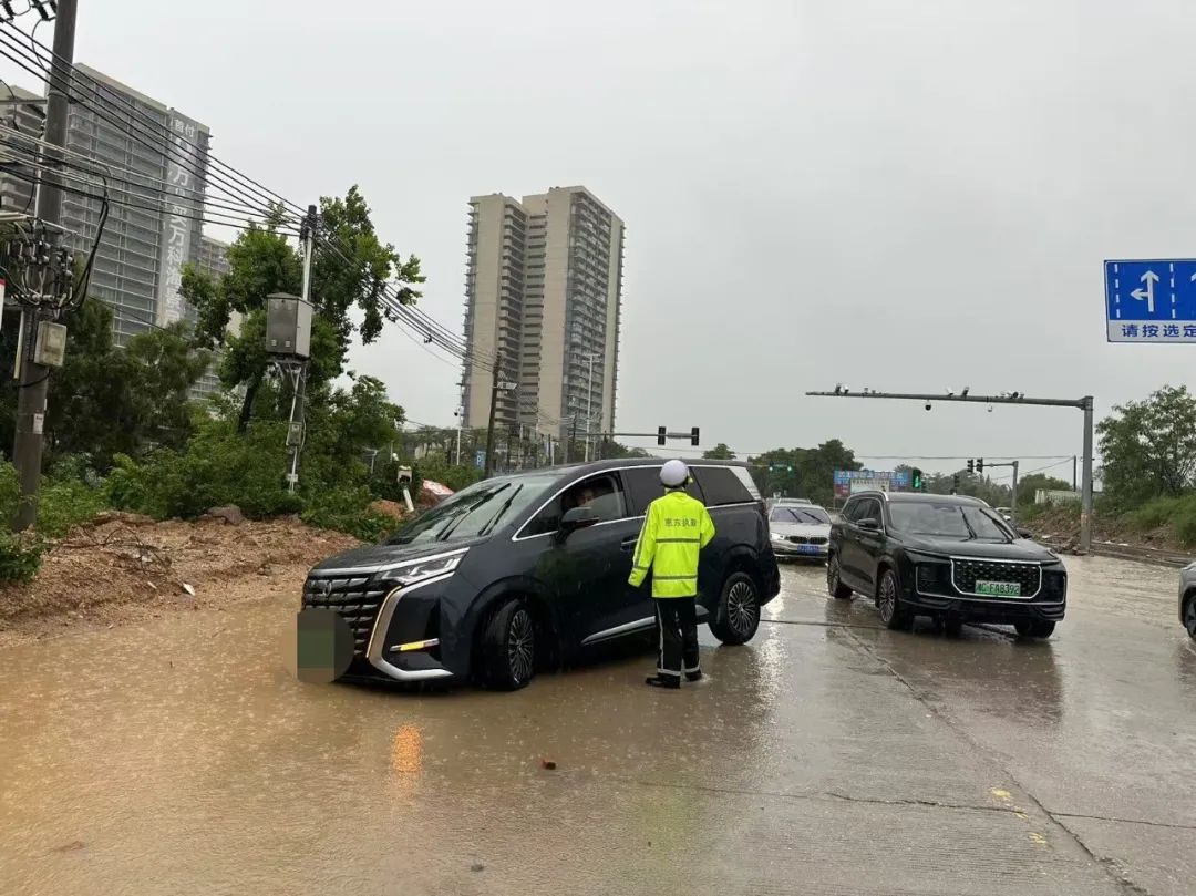 惠东交警温馨提醒:雨天路面附着力低,途经泥泞、积水路段时务必减速观察,谨慎驾驶,切勿贸然通过;若遇车辆被困,应及时报警等待专业救援,避免因自行脱困造成二次危险。