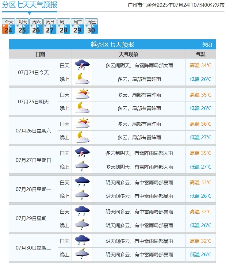 越秀区具体预报